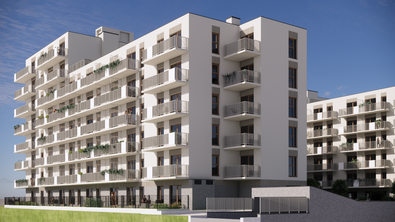 The project is a continuation of the dynamically developing Metro Art housing development and fits perfectly into the modern character of the neighborhood.