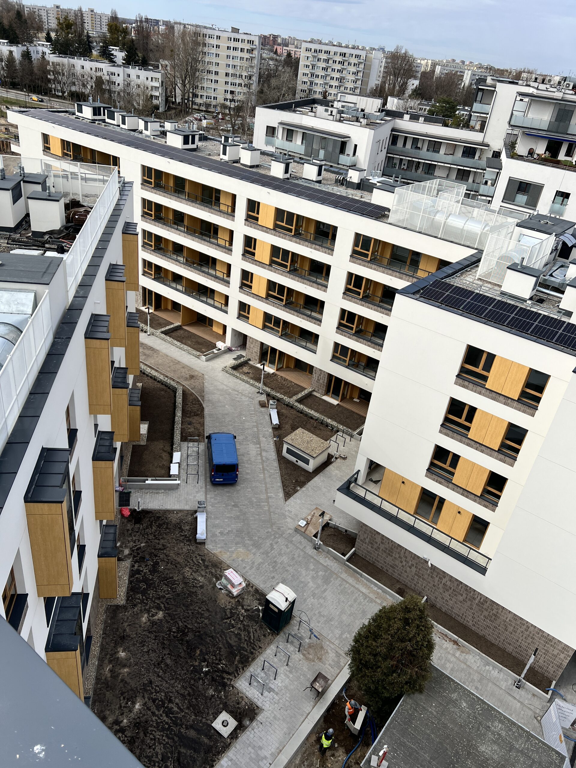 The new development called “Sady Żoliborz”, located in Warsaw at the intersection of Anny German and Krasińskiego Streets, is the first stage of a multi-stage investment project which at this stage will comprise two multi-family buildings, 5 to 8 storeys high, with a total of 112 flats of varying sizes. Some of the flats located on the ground floor will have private gardens, while additionally, on the fifth floor of one of the buildings, a large publicly accessible green terrace has been planned. The buildings will also have a 2-level underground car park with 134 parking spaces.