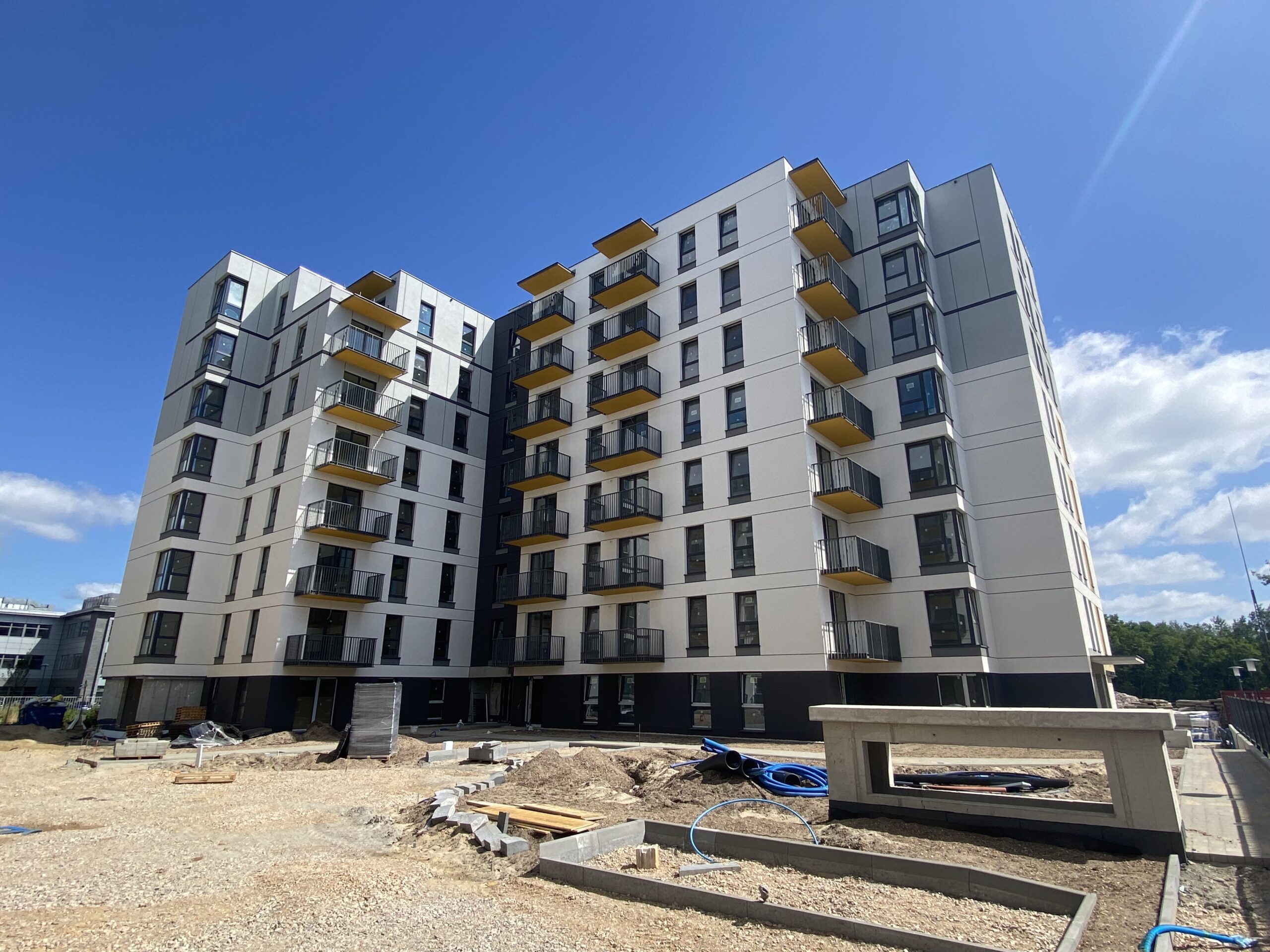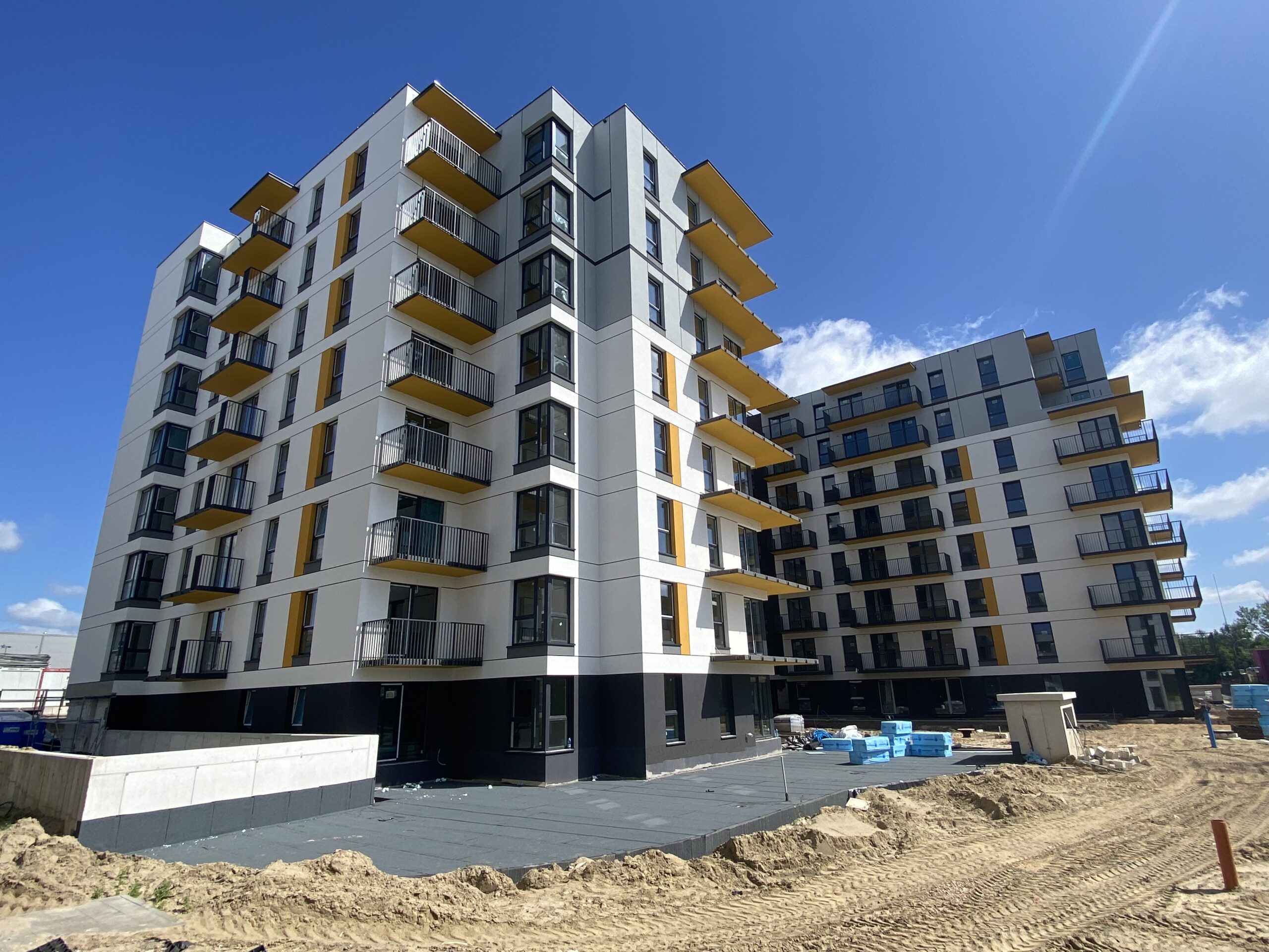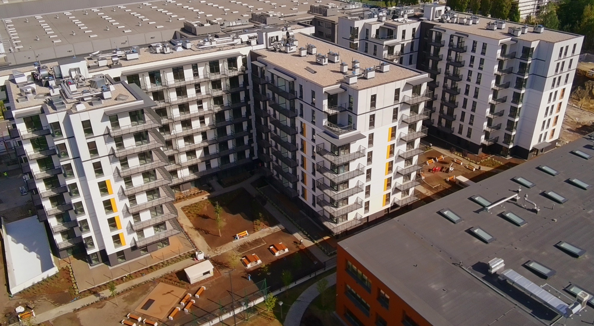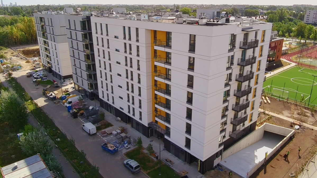 The “Ursus Vita” estate is a new housing development consisting of 6 buildings, forming next stages of the investment. The next stage, currently being built by “AMConstruction”, is comprised of two independent, cuboid-shaped 8-story buildings, situated on a common, double-level underground garage.