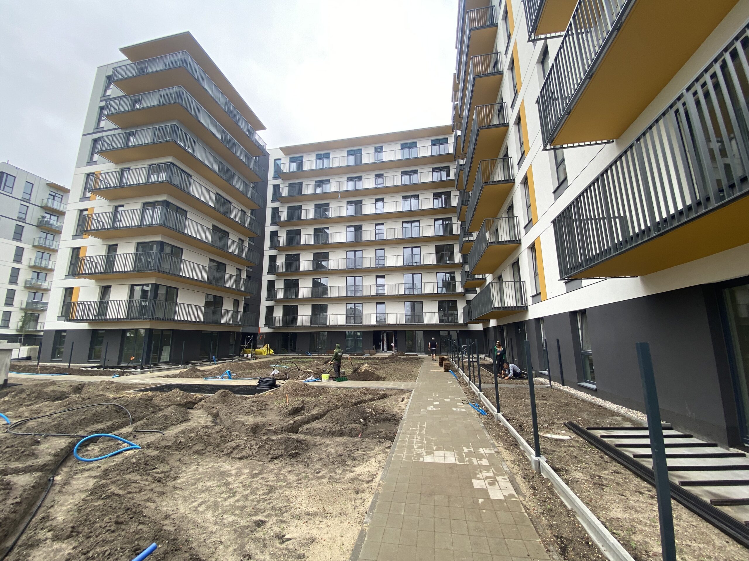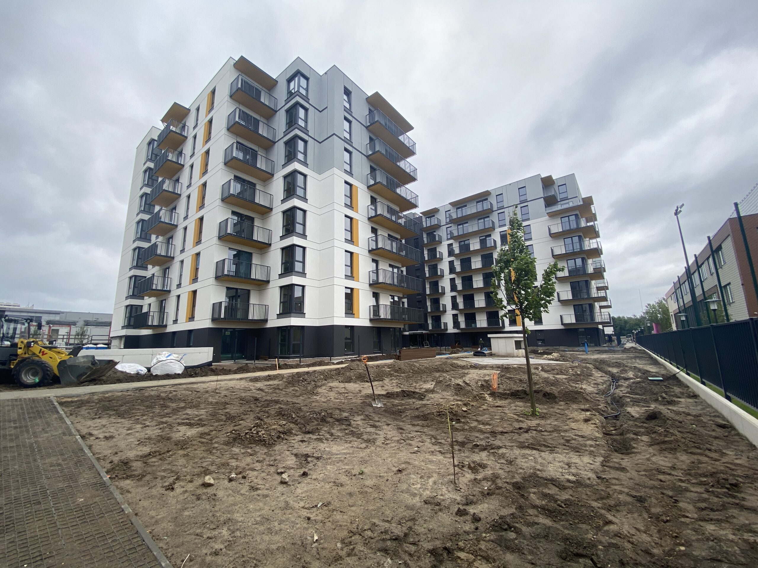 The investment is characterized by elegant and modernist building shapes, maintained in a monochromatic combination of gray and white, with strong, energetic color accents. Each building will be distinguished by an individual color scheme, serving as the leading motif of the stage – from yellow, through orange and green, to blue. Decorative steel elements of the facade and glass balcony railings refer to the industrial character of the district. They give the whole a modern and original touch, which perfectly distinguishes this estate from its surroundings.