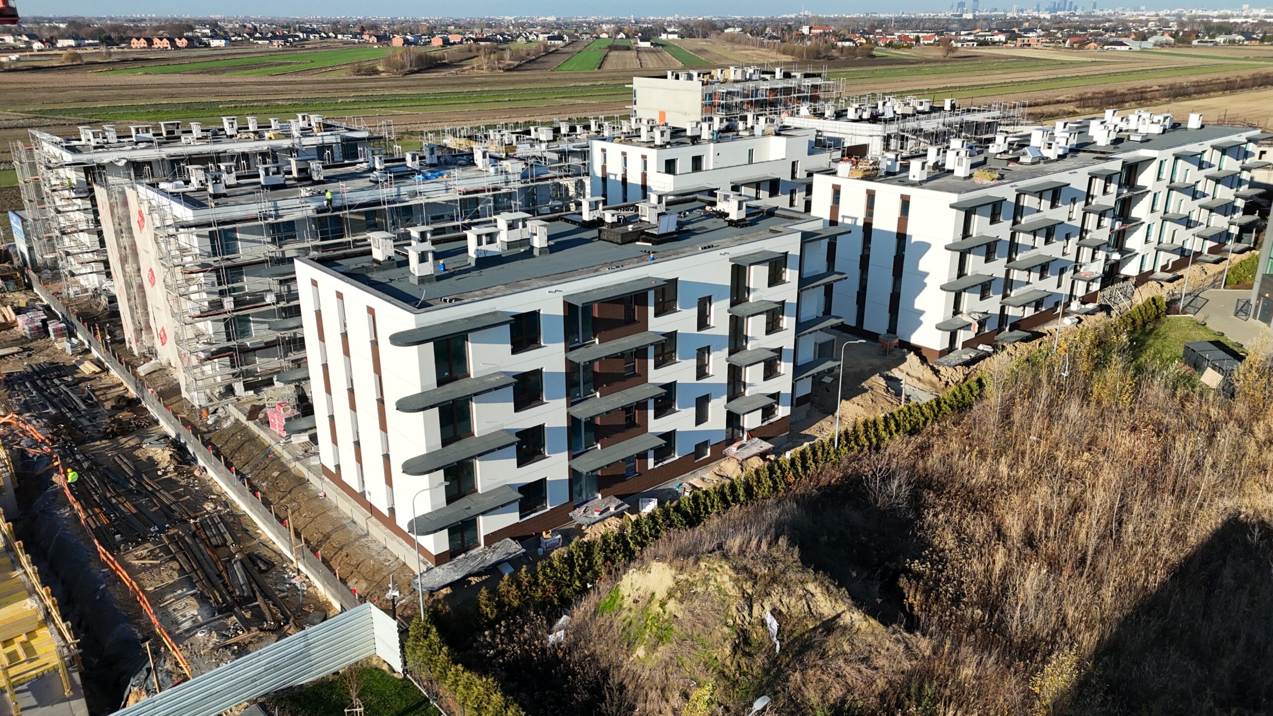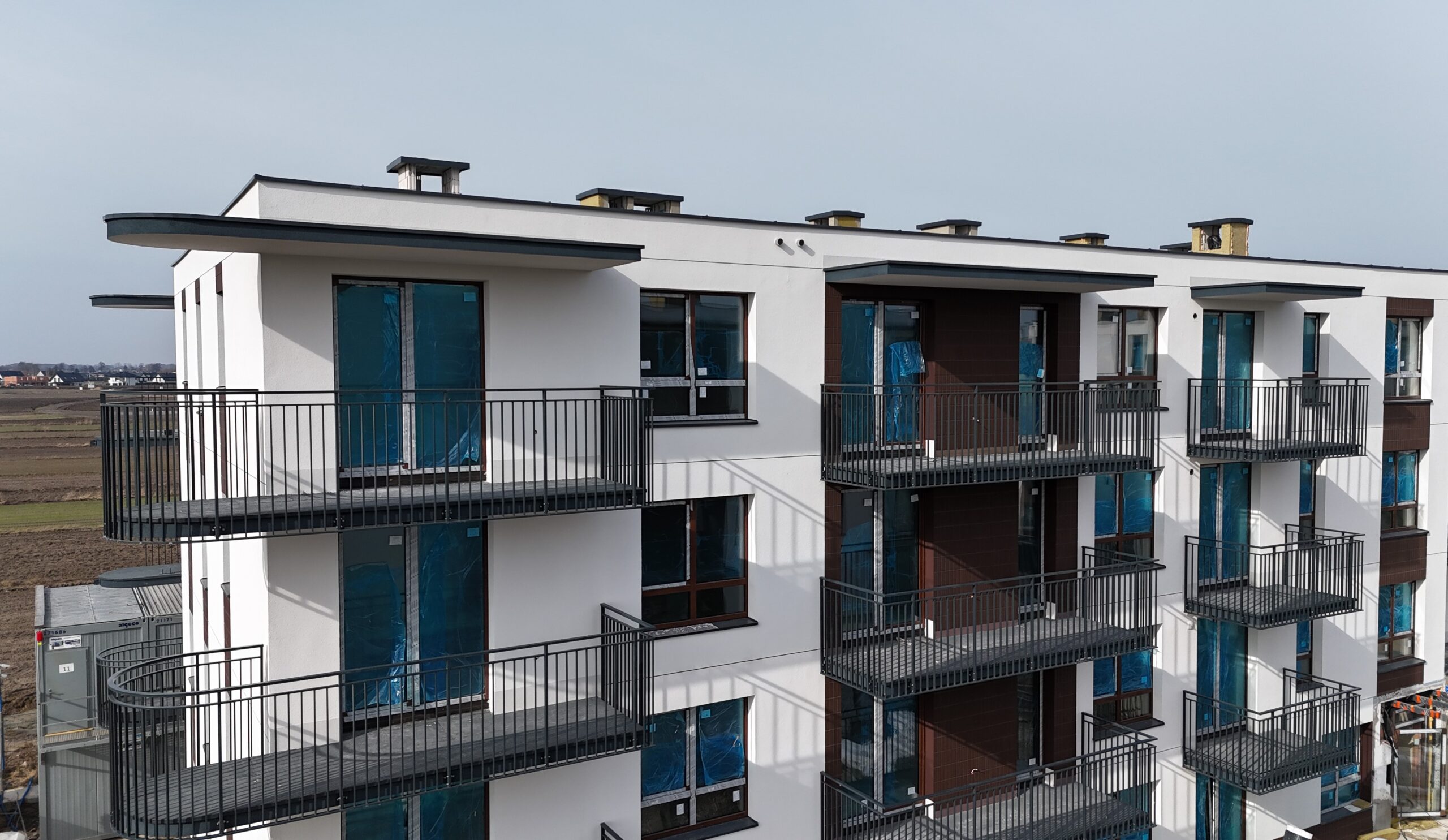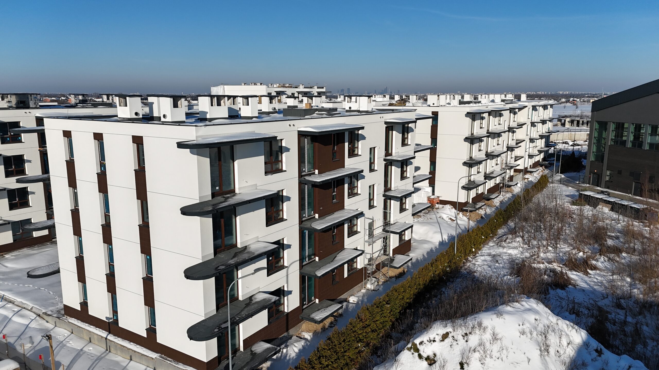 Budynki zostały zaprojektowane z myślą o wysokim standardzie życia, łącząc estetykę z funkcjonalnością. Jasne elewacje i przestronne balkony tworzą przyjazne otoczenie, a starannie zaprojektowane tereny zielone zapewniają mieszkańcom relaks i spokój.