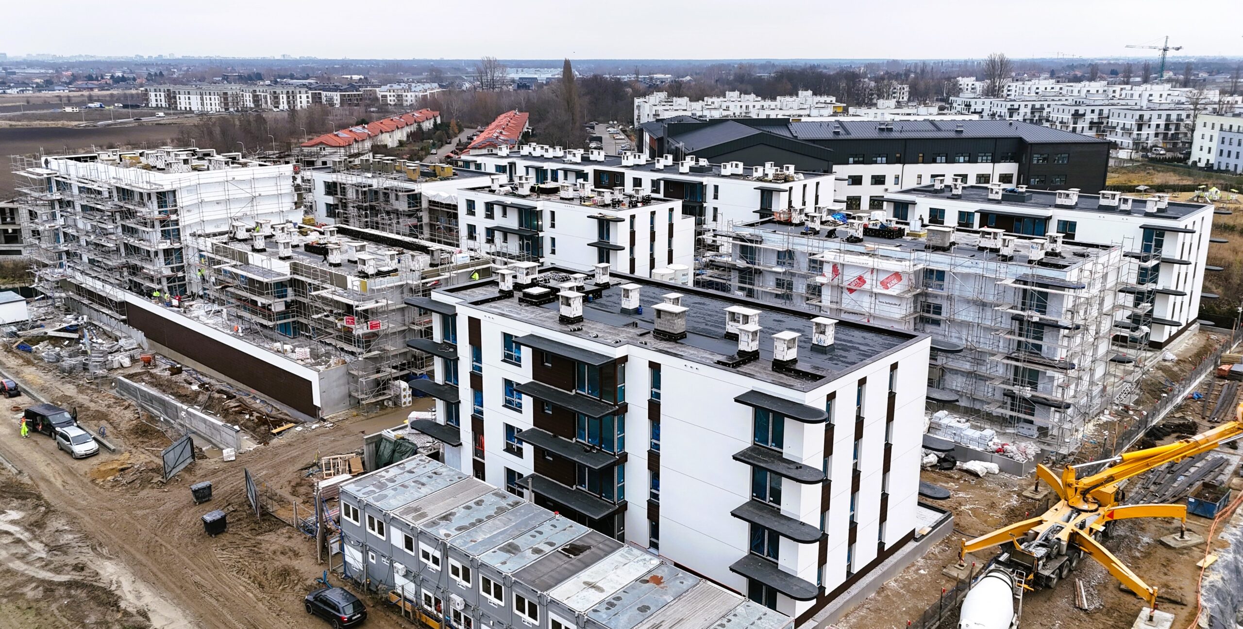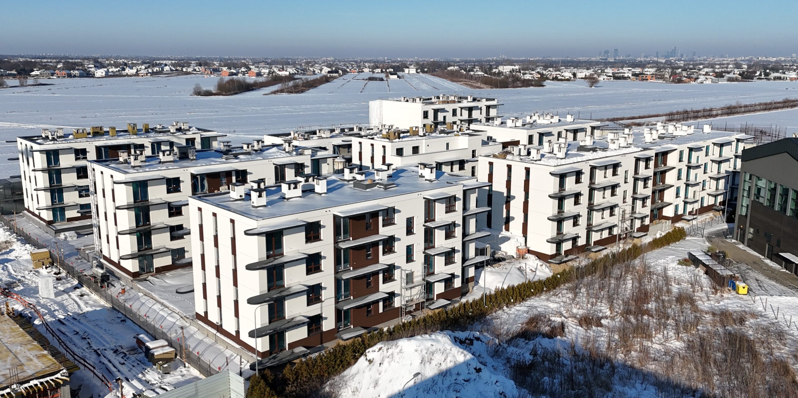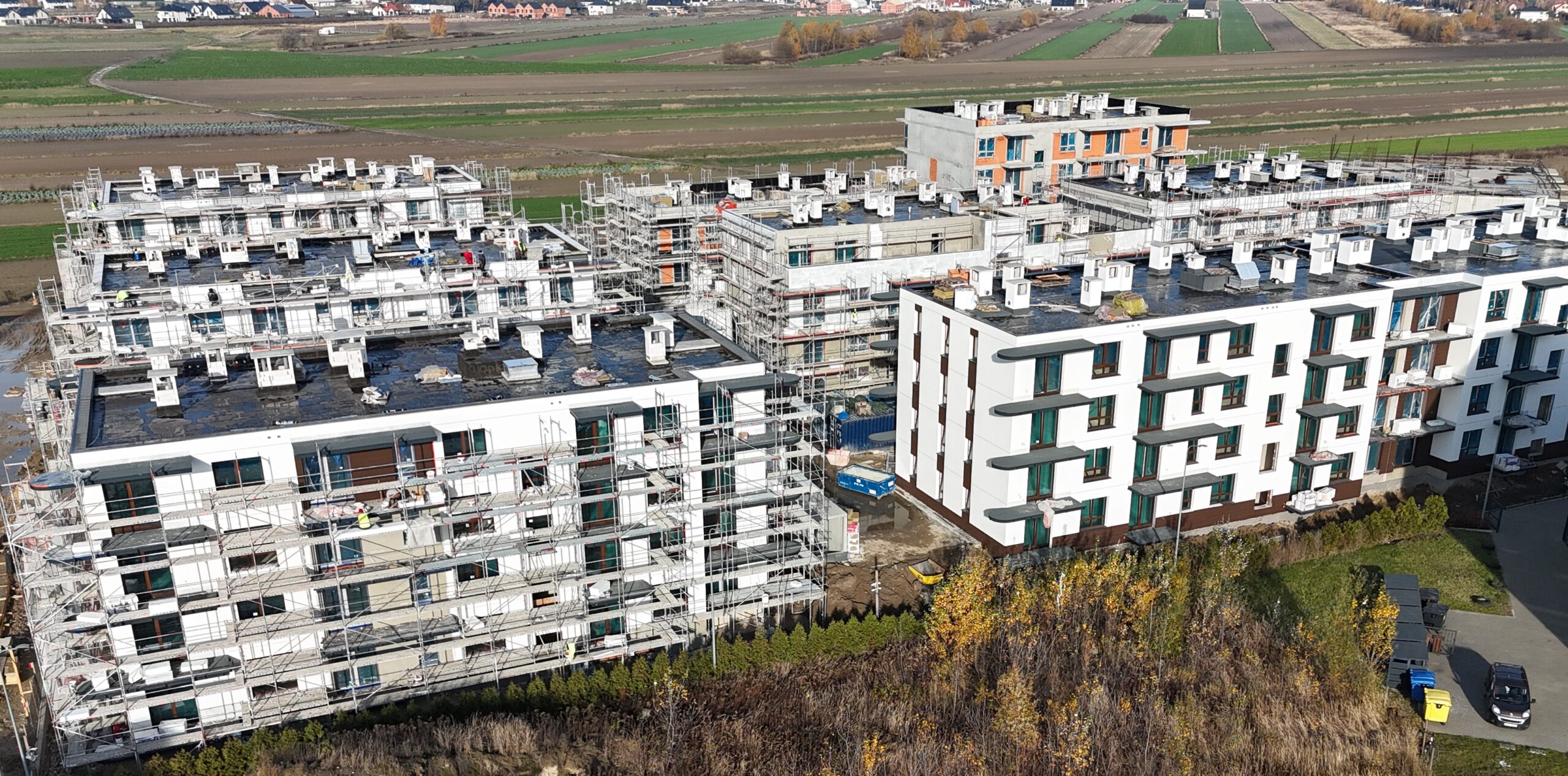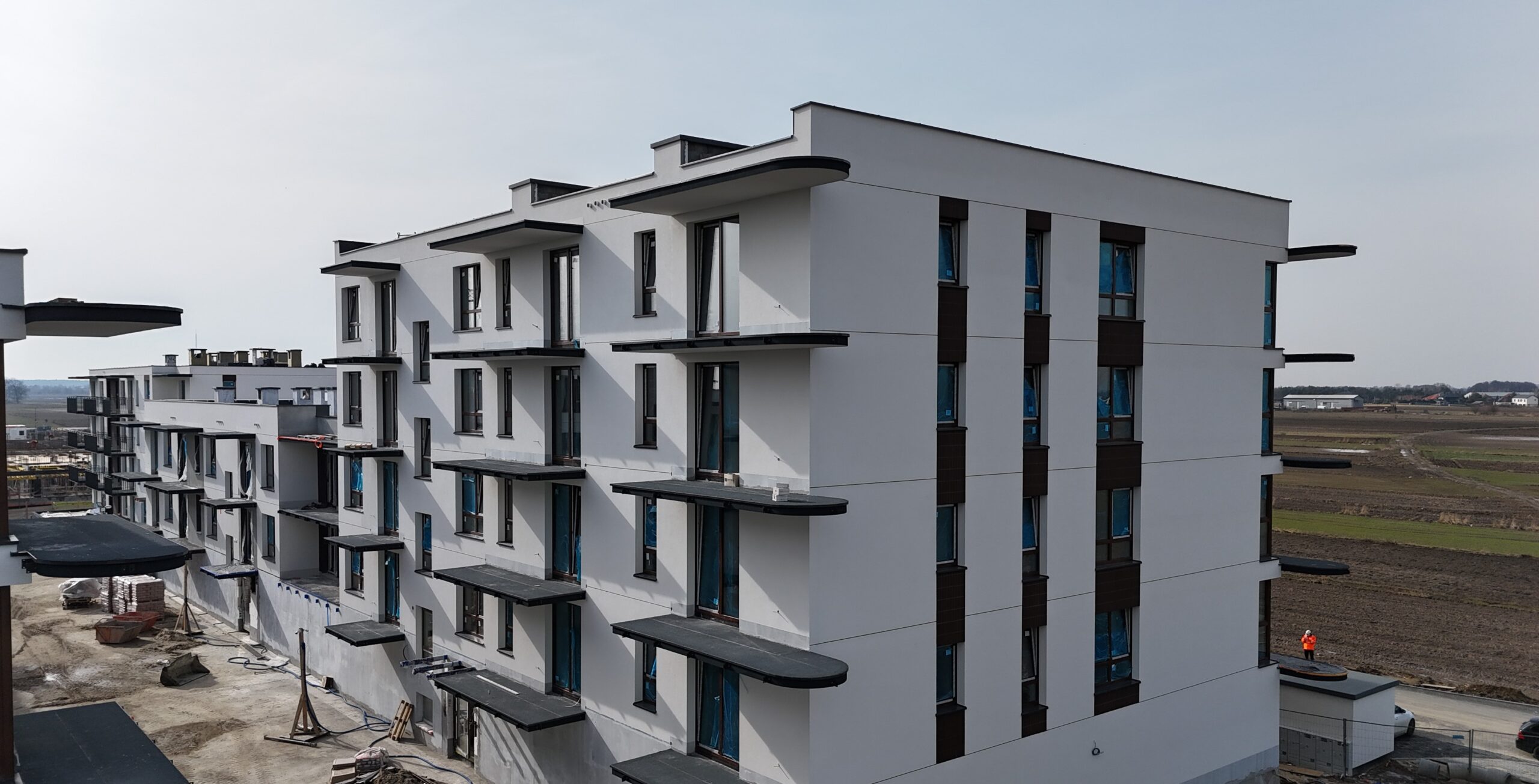 Budynki zostały zaprojektowane z myślą o wysokim standardzie życia, łącząc estetykę z funkcjonalnością. Jasne elewacje i przestronne balkony tworzą przyjazne otoczenie, a starannie zaprojektowane tereny zielone zapewniają mieszkańcom relaks i spokój.